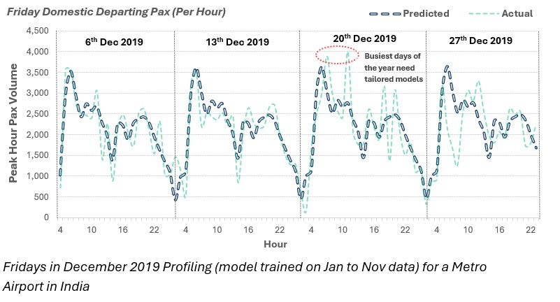 Airports are interested in predicting hourly and daily demand with a higher degree of confidence interval, and not just quarterly or annual demand to streamline resourcing allocation decisions.