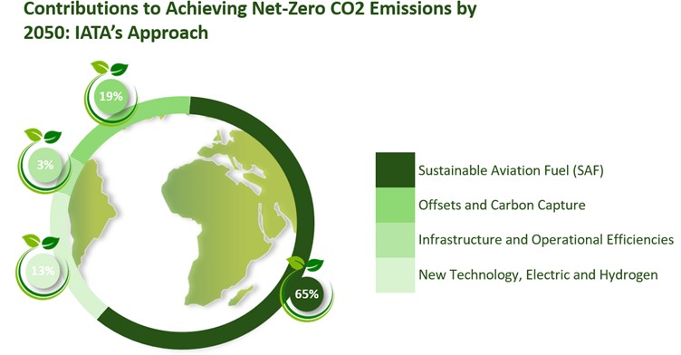Airlines around the globe are committing to aggressive decarbonisation goals and to achieve net zero emissions by 2050. IATA estimates that Sustainable Aviation Fuel (SAF) is expected to be a key driver and could contribute ~65% of the reduction in emissions needed by the aviation sector to meet net zero ambitions.