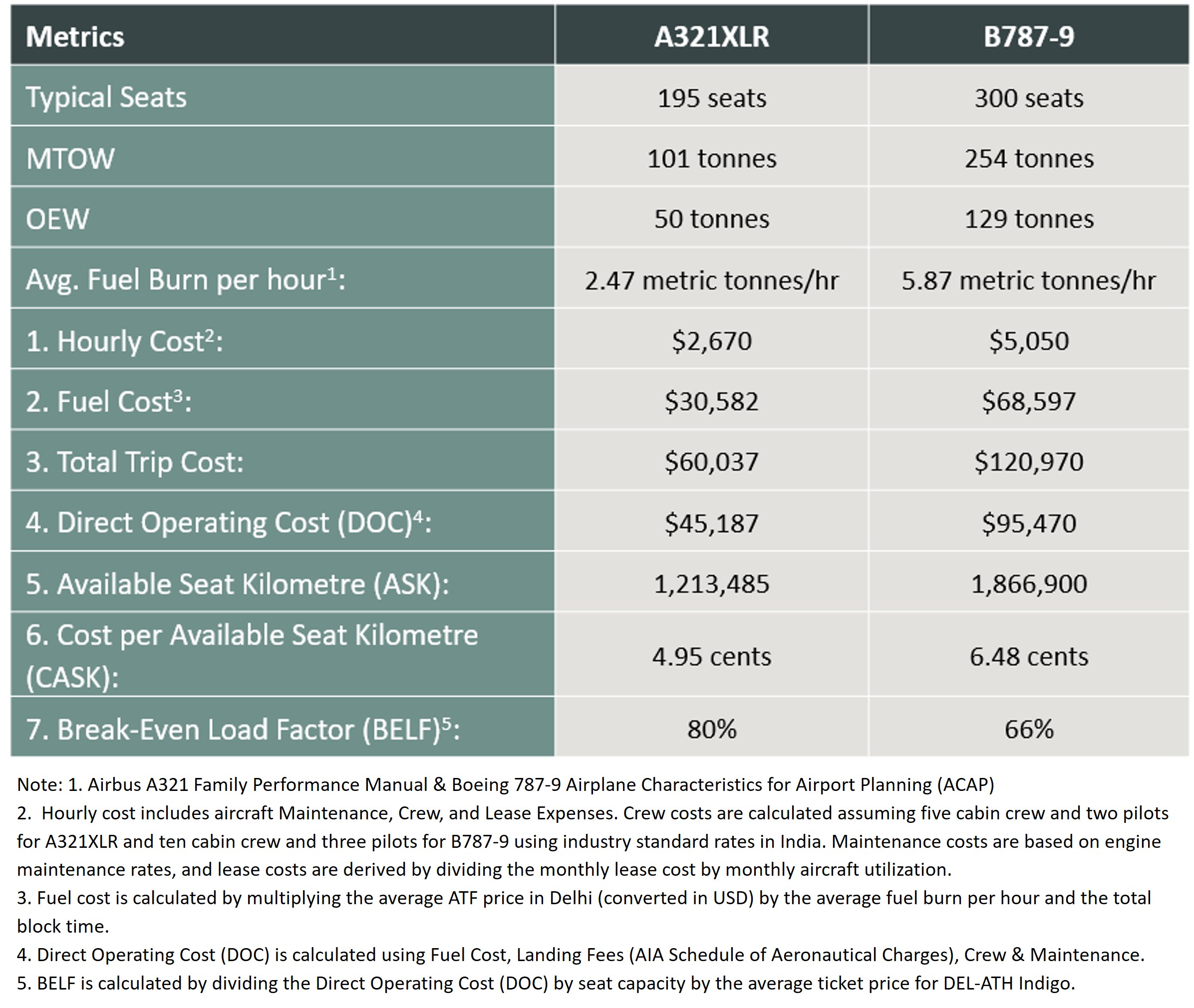 DEL-ATH Economics (6223 kms/3360 nautical miles)